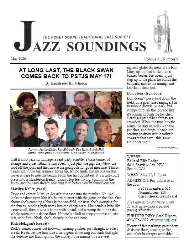 Puget Sound Traditional Jazz Society has released our latest newsletter. Click on the image to download the latest PDF newsletter. You may also view our archive of past newsletters here